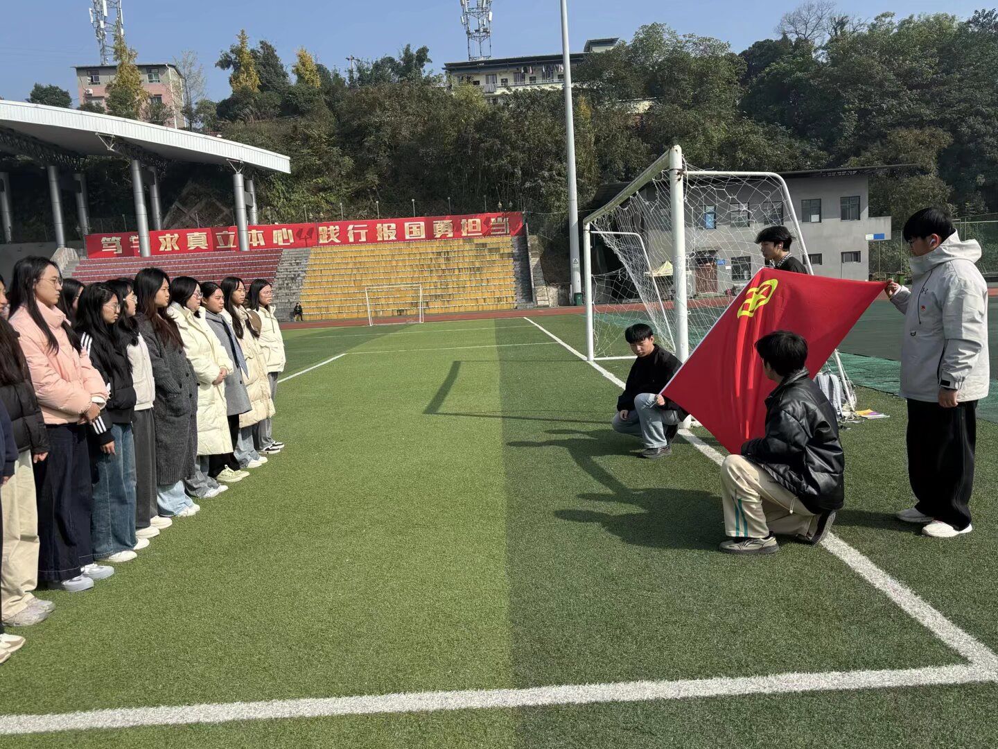 本网讯(文/王小龙、图/刘欣媛)11月27日下午,太阳成集团tyc33455第四十七期青春团校实践课以“青春活力,团结向上”为主题在北操场举行。活动以趣味互动为主要形式,旨在增强团员青年的团队协作意识,展现青春风采,全体学员积极参与。