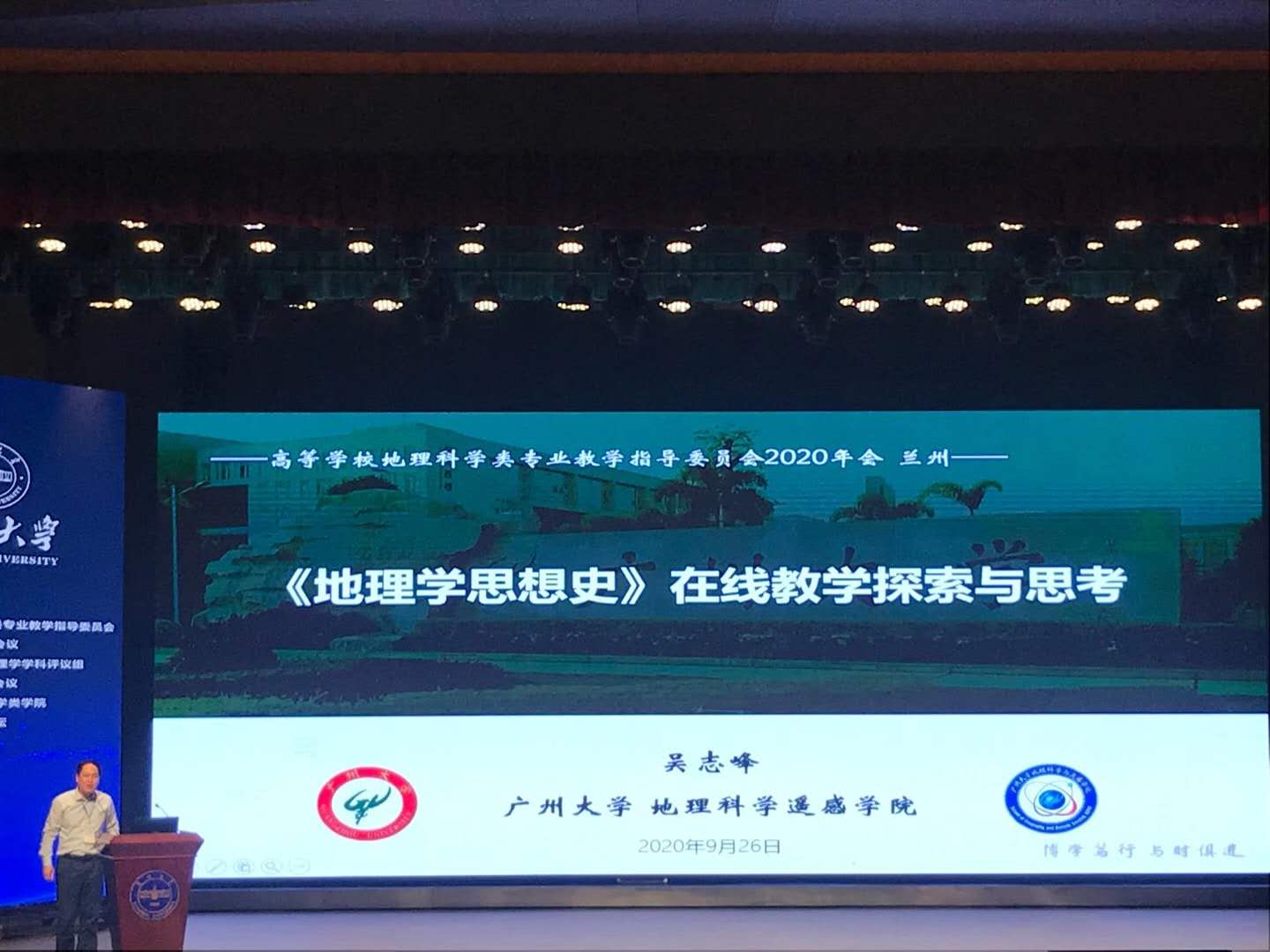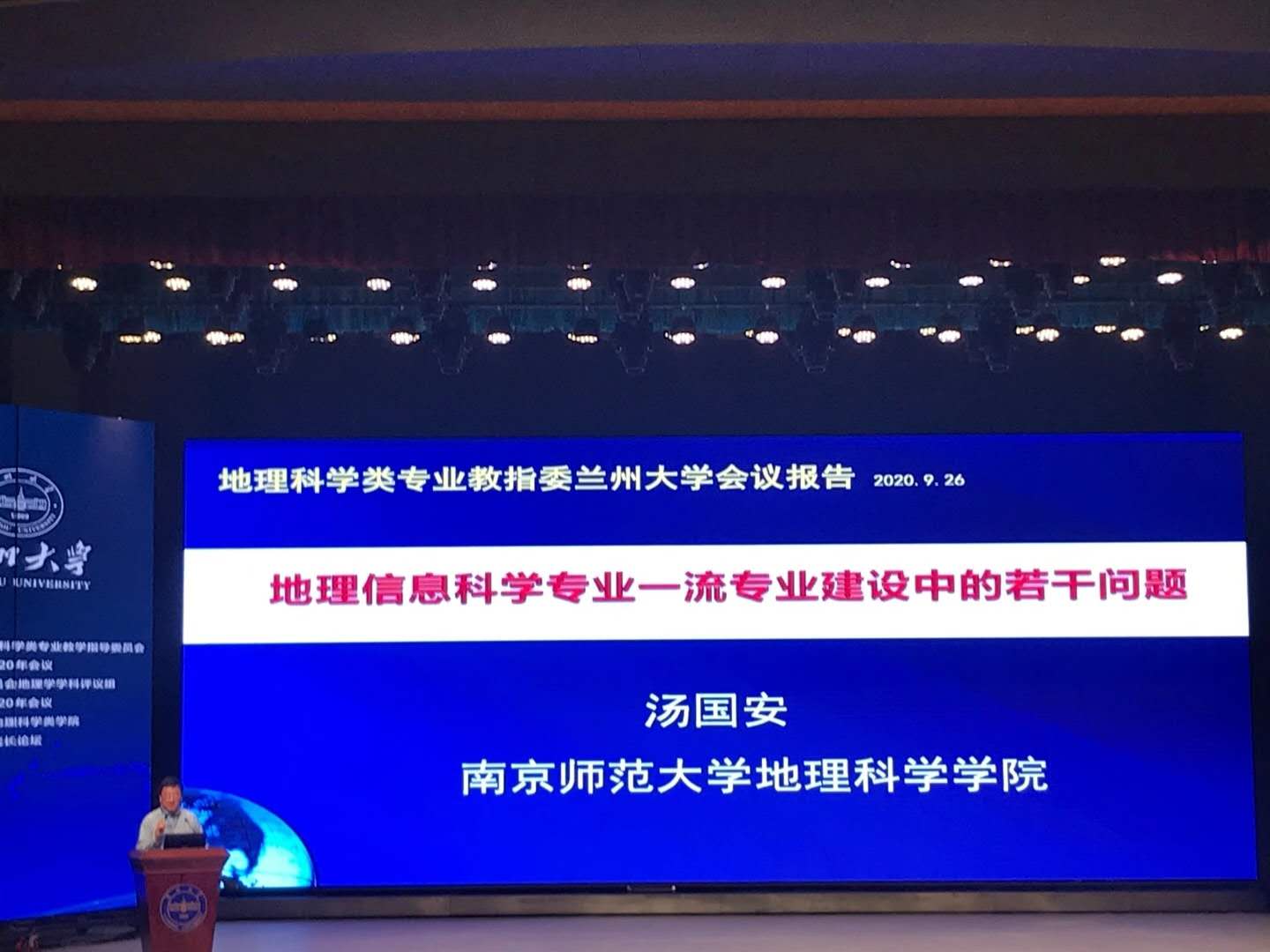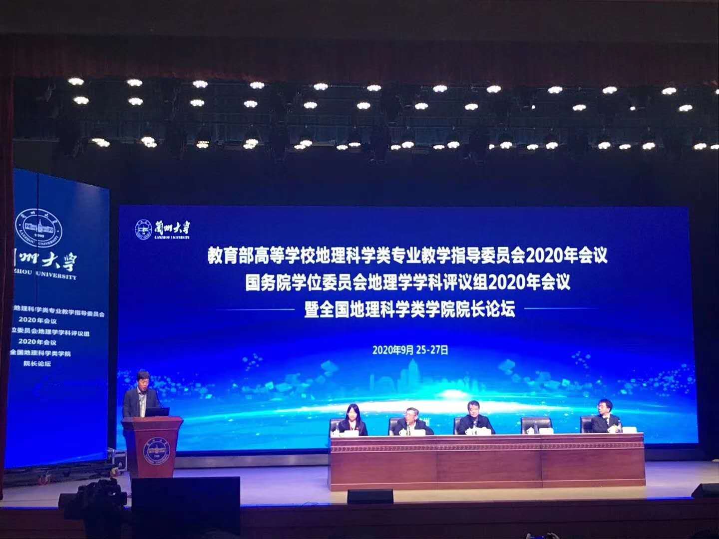 本网讯(文图/孙永兴)2020年9月25-27日,太阳成集团tyc33455旅游学院院长郭剑英,院长助理孙永兴、四川世界遗产普及基地主任武克军一行三人参加了在兰州大学召开的“教育部高等学校地理科学类专业教学指导委员会2020年会议、国务院学位委员会地理学学科评议组2020年会议暨全国地理科学类学院院长论坛”。中国地理学会理事长陈发虎院士,国务院学位委员会地理学学科评议组召集人史培军教授、教指委主任贺灿飞教授,以及教育部高等学校地理科学类专业教学指导委员会全体成员、中国地理学会地理教育工作委员会全体委员、全国地理学院高等院校院长及相关教师代表300余人参加了会议。此次会议交流提出了对地理学发展的思考和建议,为中国地理学未来的发展提供了更加科学的指导。通过专家汇报讲解和解读,使我们更加详细地了解了地理学在全国高等院校的办学情况、相关高校的地理学双一流建设目标与举措、现代社会需要培养什么样的地理学人才等,为旅游学院专业特色建设,以及今后地理科学(师范)专业的申报提供了重要参考和帮助。
