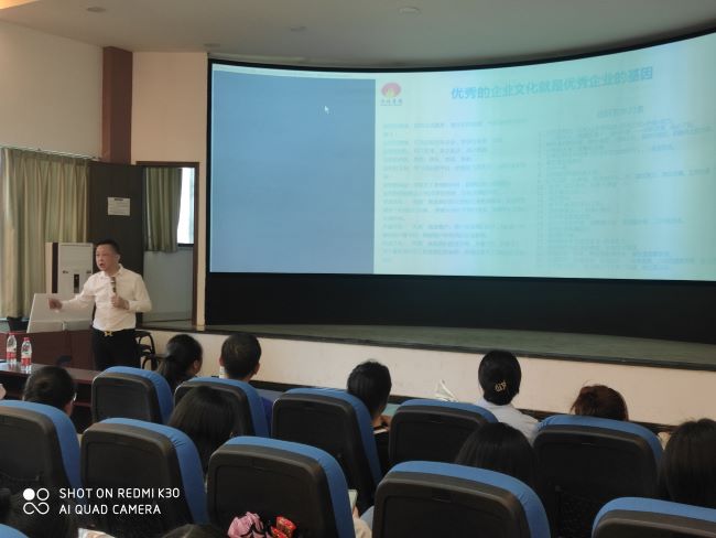 唐国忠通过详细讲解经营企业的四个优势,充分肯定了我院酒店管理专业的优势。他通过自身的创业经历,结合欣旺集团的企业文化,指出做企业最大的目的不是“做多大、做多强”,而是要做得长久。