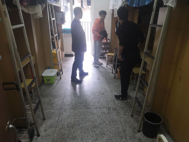 老师们主要走访了百果苑、桂苑以及武珈山等宿舍。对寝室卫生、安全用电、通风情况等做了仔细检查。还对同学们日常生活中遇到的问题提出了合理建议,叮嘱同学们一定要注意寝室用电安全,同时要注意保持寝室整洁。并表扬了卫生、纪律等方面都做得较好的宿舍,也对部分卫生状况较差的宿舍提出了整改意见。