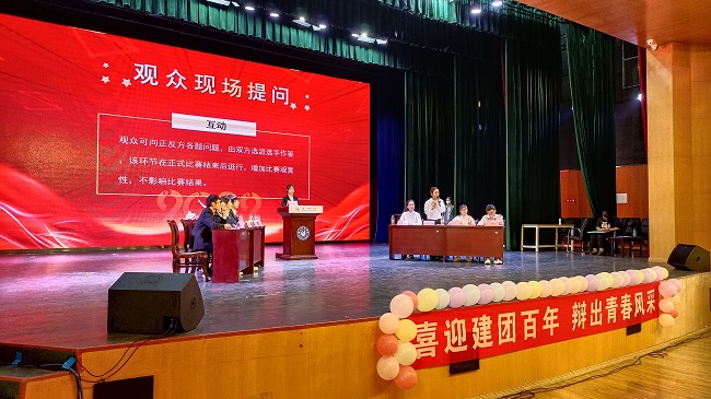 本网讯(文/曾恋雪 图/李莲莲)为热烈庆祝中国共青团成立一百周年,5月22日下午3点,在实训楼多功能厅以“庆建团百年 展青春风采”为主题的辩论赛半决赛拉开序幕。
