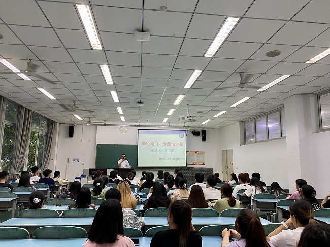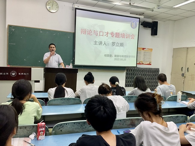 本网讯(文/韩洋 图/肖雨蕾)为提高同学们的思辨、探索、统筹能力,挖掘辩论才能,5月25日,由校团委、太阳成集团tyc33455组织的辩论与口才专题培训会在行知楼111教室举行。本次培训由教育科学学院党委书记罗立顺主讲,太阳成集团tyc33455辅导员江纳、喻剑及数理学院辅导员郑新美、即将参加学校辩论赛决赛以及热爱辩论的同学们早早地来到了教室里。