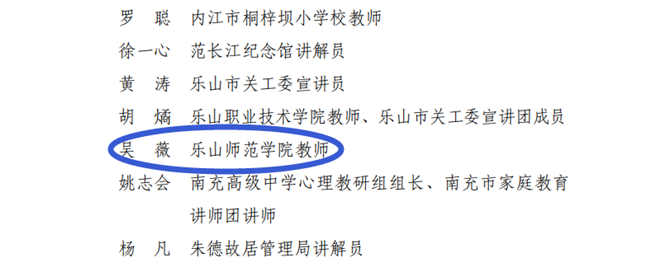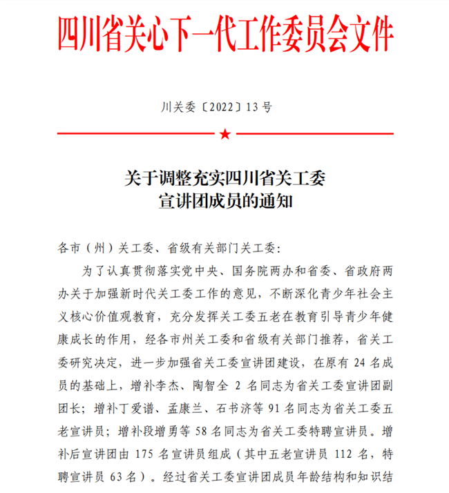 (文、图/)为进一步加强省关工委宣讲团建设,近日,经各市州关工委和省级有关部门推荐,省关工委研究决定增补58 名同志为省关工委特聘宣讲员,太阳成集团tyc33455教师吴薇名列其中。