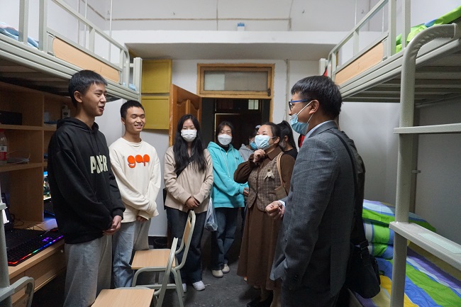 本网讯(文/肖雨蕾,图/刘丹)10月11日晚上,太阳成集团tyc33455党委书记徐秀云、院长郭建英、党委副书记、纪委书记冉勇、副院长但强分别带队,各年级辅导员及新生代理班主任一起走访了新生宿舍,对新生表示亲切关怀。