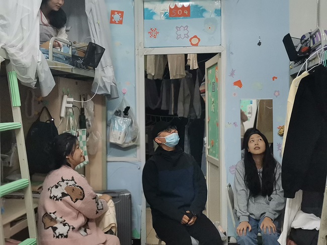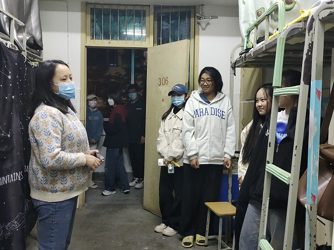 走访过程中,学院老师和同学们亲切交谈,询问同学们目前在学习、生活中遇到的困难,为同学们答疑解惑,提醒同学们劳逸结合,注意身体健康与心理健康,平时主动关注疫情动态,提高疫情防控责任意识,叮嘱同学们有问题请及时联系辅导员老师,学院会积极为大家解决问题。