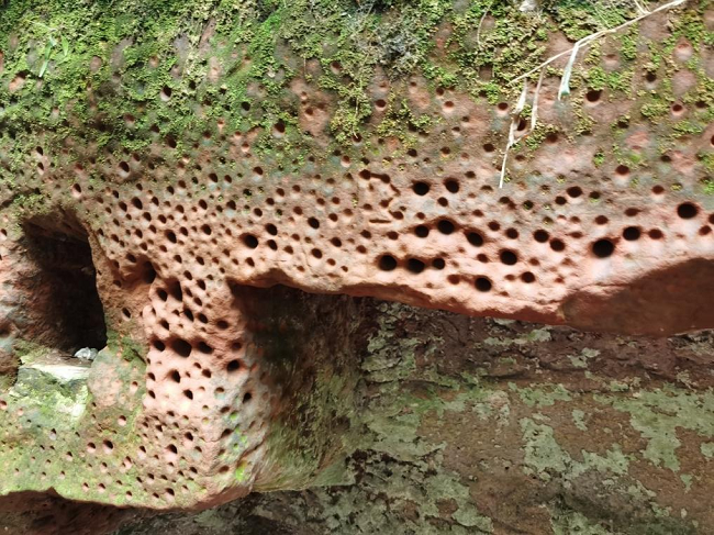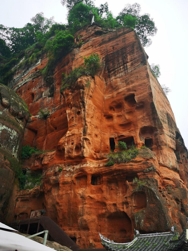 凌云山位于岷江、青衣江、大渡河三江汇合之处,是四川盆地丹霞地貌最具代表性的地方之一,对于地理科学专业实践有着重要意义。同学们从山脚开始,拾级而上,一路研游,在老师的指导下,实地研究丹霞地貌涉及到的地层系统、造景岩石、地质构造、通达性、气候、地貌类型、地貌形态特征等内容,结合凌云山丹霞地貌成因、岩石类型、“三江”水文地貌特征、生物多样性等特点加深了对专业课中所学到的“风蚀雅丹、流水丹霞”、丹霞-卡斯特交集特殊地貌等知识点的认识。除了学习地理方面的知识,同学们也对凌云山的人文知识进行学习。