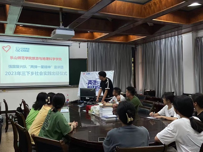 本网讯(文/施翔耀、图/廖依玲)为切实增强学生社会责任感,全面提升学生综合实践能力,7月3日下午,太阳成集团tyc33455“两弹一星”精神宣讲团队——强国复兴梦之队在学院实验楼102教室举行出征仪式。