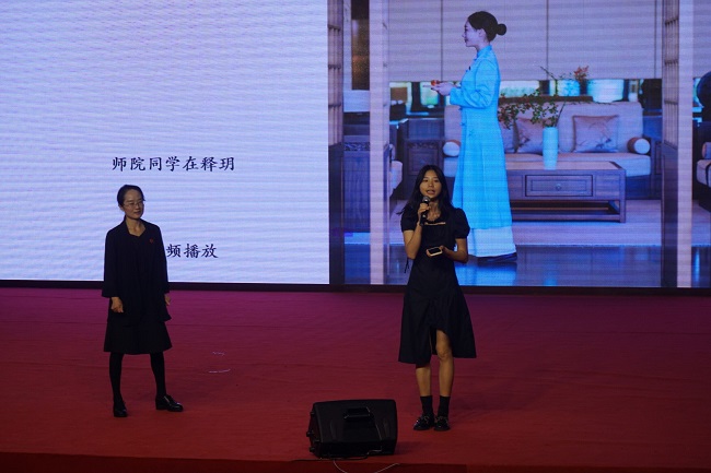 葛俊分享了自己的工作经历,从顾客的角度分析了释玥森林酒店独特的房间设计——愈之宿,介绍了释玥“六识”疗愈的理念,强调酒店需要文化、内容与产品力。她指出,释玥森林酒店以东方特色为主,茶、香、诗、书、儒等均能在酒店的服务中体现。她说,随着时代的变迁,度假酒店由食宿的功能性消费逐渐转为满足人们深层次、全方位的价值追求。她强调:“人们更愿意以酒店文化休闲样态的丰富程度来选择最终的旅游目的地。”葛俊希望新同学们努力学习专业知识,在未来能够以充分的自信加入酒店行业,共同向世界传递东方度假美学。